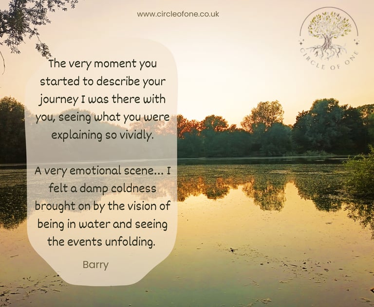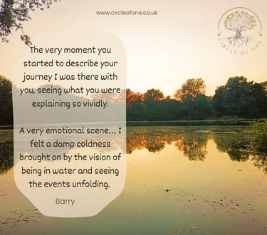 Your touch on the back of my neck was so gentle and soft, I felt totally at ease and really felt a connection even though your touch was so light I could barely feel it. It was truly amazing. And as soon as you started to speak about your journey, what you saw, I felt I was there with you and your description was amazing of the area, the child, the boat and the water. It sparked a sudden memory in me.
